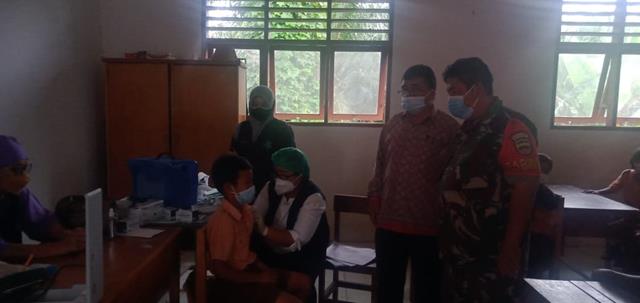 Vaksinasi Dosis l dan Dosis ll Kepada Anak Sekolah Dasar Didampingi Personel Jajaran Kodim 0207/Simalungun