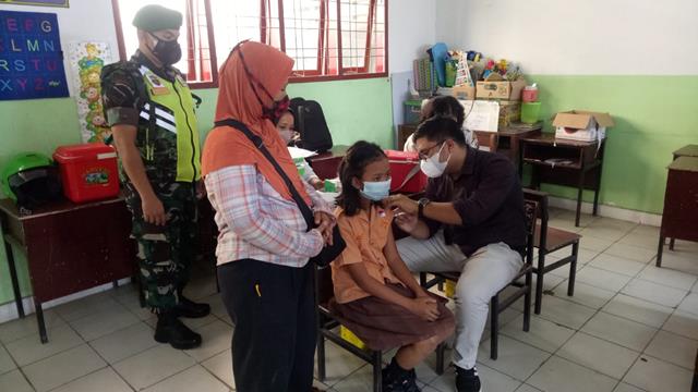 Vaksinasi Kepada Anak Sekolah Dasar SD Negeri 1223332, 1223333,  1223334, dan 1223335 Didampingi Personel Jajaran Kodim 0207/Simalungun