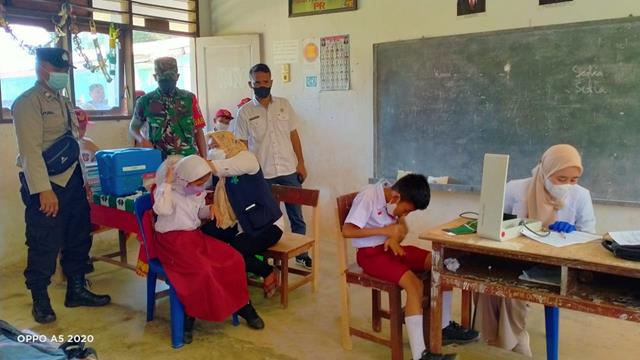 Vaksinasi Kepada Anak Sekolah Dasar Usia 06 S/d 12 Tahun Didampingi Personel Jajaran Kodim 0207/Simalungun