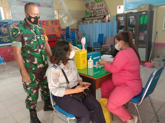 Dalam mendukung dan mensukseskan program pemerintah vaksinasi masih terus dilaksanakan, seperti halnya yang dilakukan para Babinsa dengan melaksanakan monitoring dan pendampingan kegiatan vaksinasi diwilayah binaan, dalam kegiatan tersebut Babinsa mendampingi secara langsung setiap warga desanya yang akan menerima vaksin. Pada pelaksanaan kegiatan vaksinasi itu, para petugas memberikan semangat dan dukungan kepada para penerima vaksin agar tidak perlu takut karena vaksin tersebut aman.
