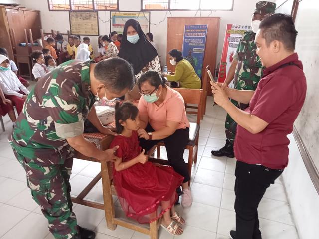 Vaksinasi Untuk Anaka Umur 6 s.d 11 Tahun Dibeberapa SD Negeri Di Kota Siantar DIdampingi Personel Jajaran Kodim 0207/Simalungun