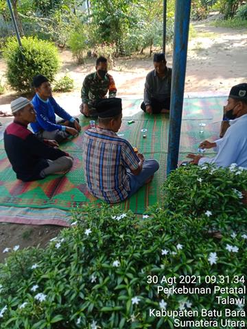 Batu Bara | Dalam rangka untuk menciptakan dan meningkatkan kerja sama yang baik, dan menjaga silatuhrahmi antara Babinsa dan Masyarakat, untuk menghibur orang yang lagi kemalangan serta kemanunggalan TNI dan Rakyat, dalam pelaksaan kegiatan ini Personel Bintara Pembina Desa (Babinsa) Koramil 04/Talawi jajaran Kodim 0208/Asahan Sertu Nanda Pebru turun kewilayah binaan untuk melaksanakan kegiatan Takziah dan Komsos dengan masyarakat, kegiatan tersebut yang dilaksanakan bertempat di Dusun V Desa Mekar Baru Kecamatan Datuk Tanah Datar Kabupaten Batu Bara, Senin (30/08/2021).