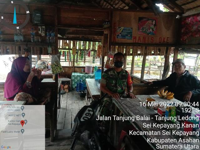 Asahan  |  Dalam rangka agar terjalin nya Silahturahmi yang Harmonis antara Babinsa Koramil 10/SK dengan warga masyarakat Desa Sei Kepayang Kanan, selain untuk silaturahmi dan anjang sana, ini juga dapat dijadikan sarana untuk lebih mengeratkan hubungan emosional antara Babinsa dengan warga desa binaan guna mewujudkan kemanunggalangan TNI dengan Rakyat, kegiatan Komunikasi Sosial ini juga bermanfaat bagi Babinsa dalam pelaksanaan tugas menyerap informasi tentang Puldatater yang langsung diperoleh dari warga binaan, dalam hal ini seperti halnya yang dilakukan oleh Personel Bintara Pembina Desa (Babinsa) Koramil 10/Sei Kepayang jajaran Kodim 0208/Asahan Kopda MD Sihombing turun kewilayah binaan untuk melaksanakan kegiatan Komunikasi Sosial (Komsos) bersama dengan warga Desa Sei Kepayang Kanan dan mengajak warga masyarakat supaya tidak bosan bosannya untuk tetap menggunakan masker saat beraktifitas agar terhindar dari penyebaran Virus Covid-19 serta memberikan pemahaman tentang perlunya pendidikan dan pengawasan bagi anak agar tidak terjerumus kepada hal yang negatif dalam pergaulan, kegiatan tersebut yang dilaksanakan bertempat di Desa Sei Kepayang Kanan Kecamatan Sei Kepayang Kabupaten Asahan, Senin (16/05/2022).