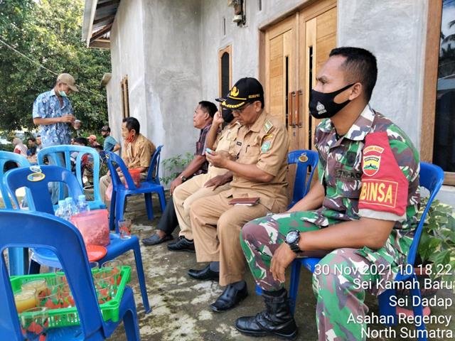 Asahan | Selain melaksanakan sosialisasi vaksinasi covid-19, Babinsa juga menghimbau kepada warga untuk tetap patuhi protokol kesehatan (Prokes) guna mencegah penyebaran covid-19, seperti yang dilakukan oleh Personel Bintara Pembina Desa (Babinsa) Koramil 12/Air Batu jajaran Kodim 0208/Asahan Serda Syaiful Anwar turun kewilayah binaan untuk turut serta melaksanakan kegiatan pendampingan pelaksanaan Vaksinasi Dosis I dan Dosis II Vaksin Pfrezer dan Sinovac, kegiatan ini juga dihadiri olehCamat Sei Dadap Bapak Berani Simbolon, Kepala Desa Sei Kamah ll Bapak Limin, Kapus Sei Dadap Ibu Eva Marbun, Para Kepala Dusun Desa Sei Kamah ll dan Perangkat Desa serta seluruh masyarakat yang melaksanakan Vaksinasi, kegiatan tersebut yang dilaksanakan bertempat di Rumah Bapak Kamaludin Kadus lll Desa Sei Kamah ll Kecamatan Sei Dadap Kabupaten Asahan, Selasa (30/11/2021).